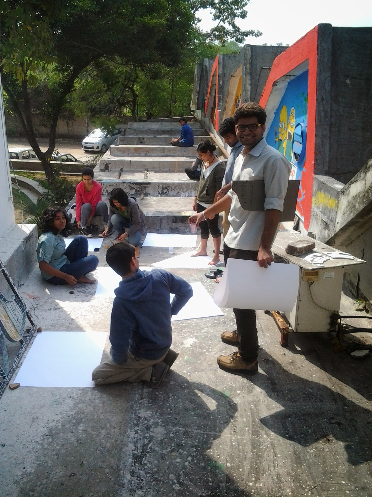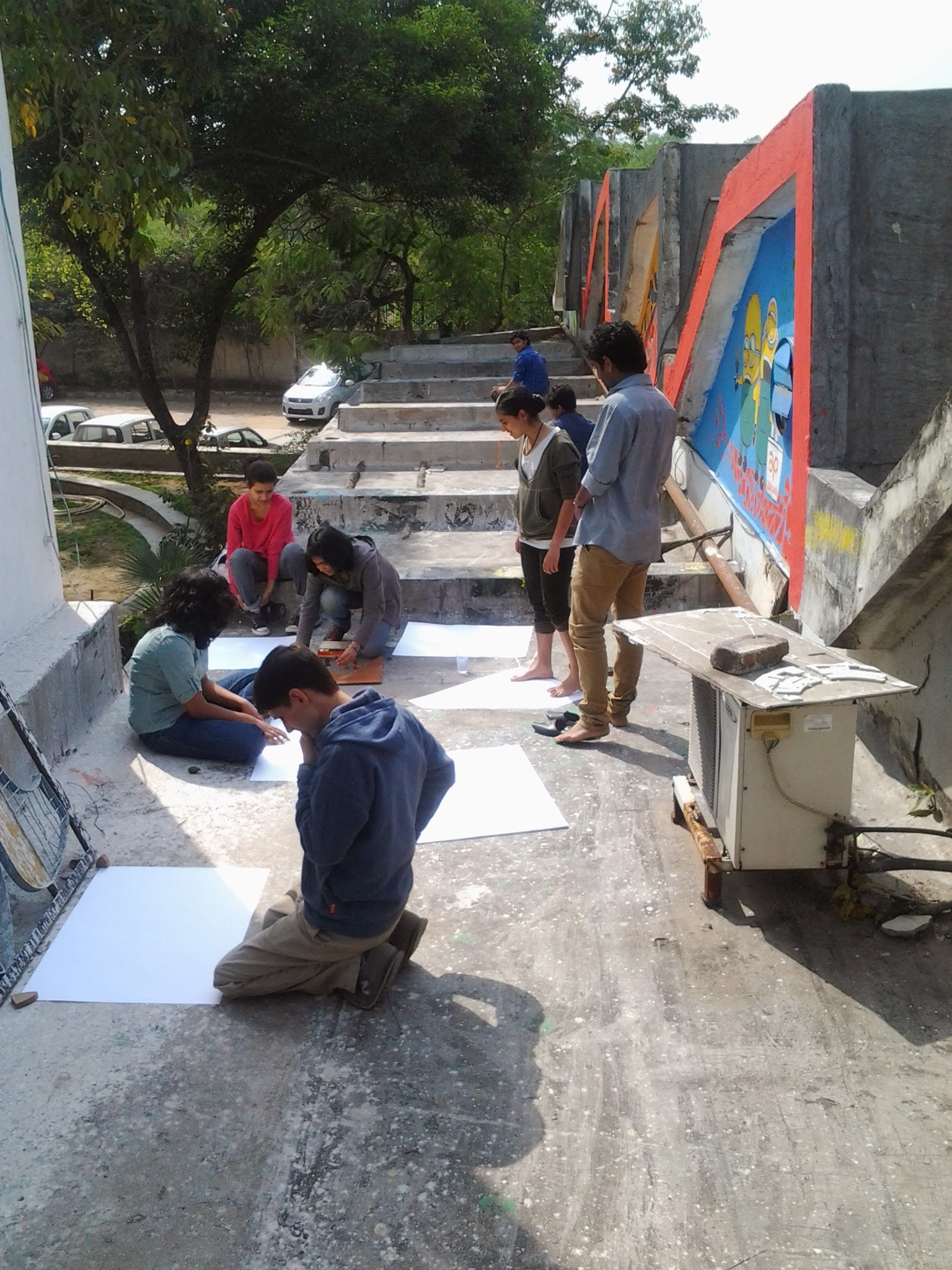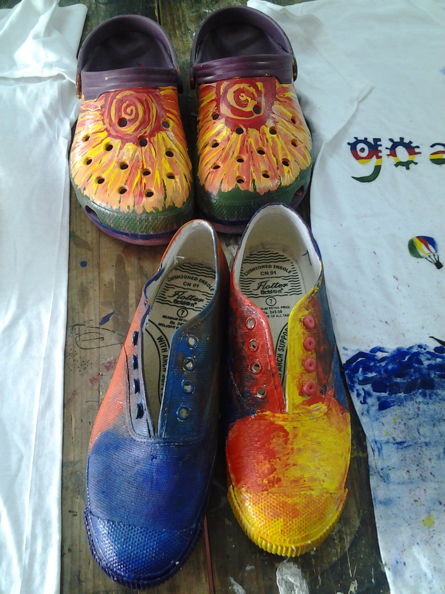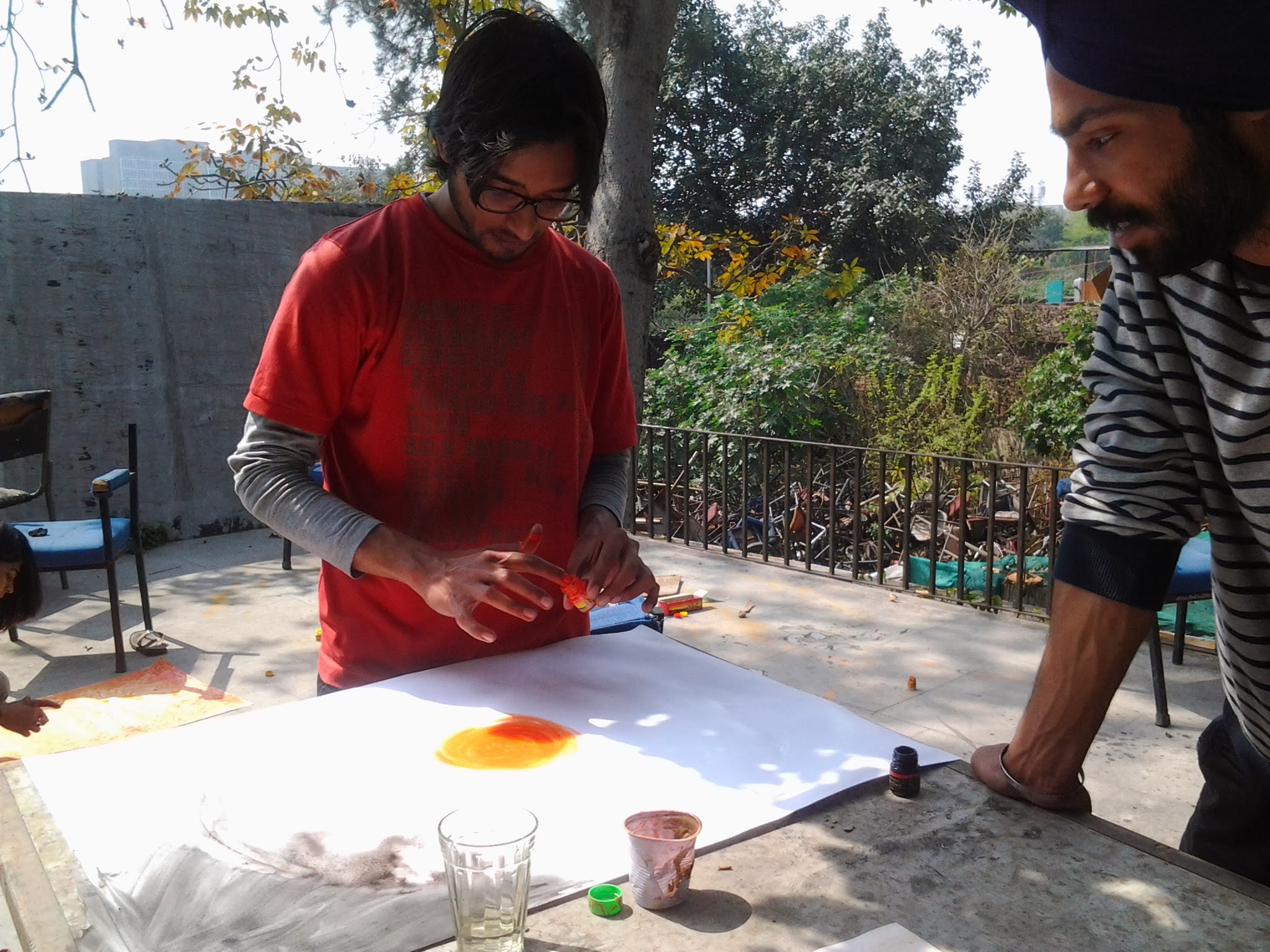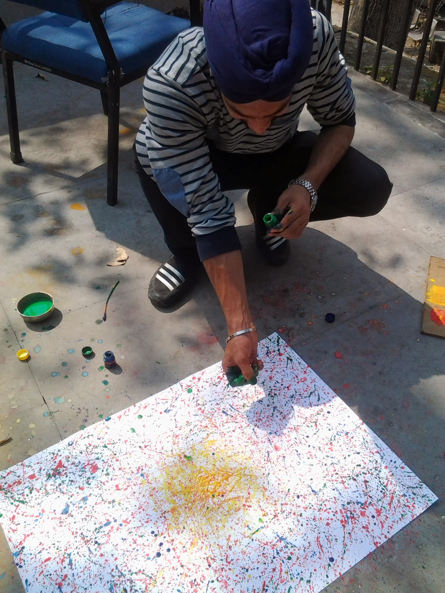 After which, that day students painted to list of music curated by them and eventually made some art on t-shirts, shoes and other unimaginable objects. The energy in the studio was exploding all the way out to the terrace and parapets. They painted with their hands, their feet, even blindfolded.