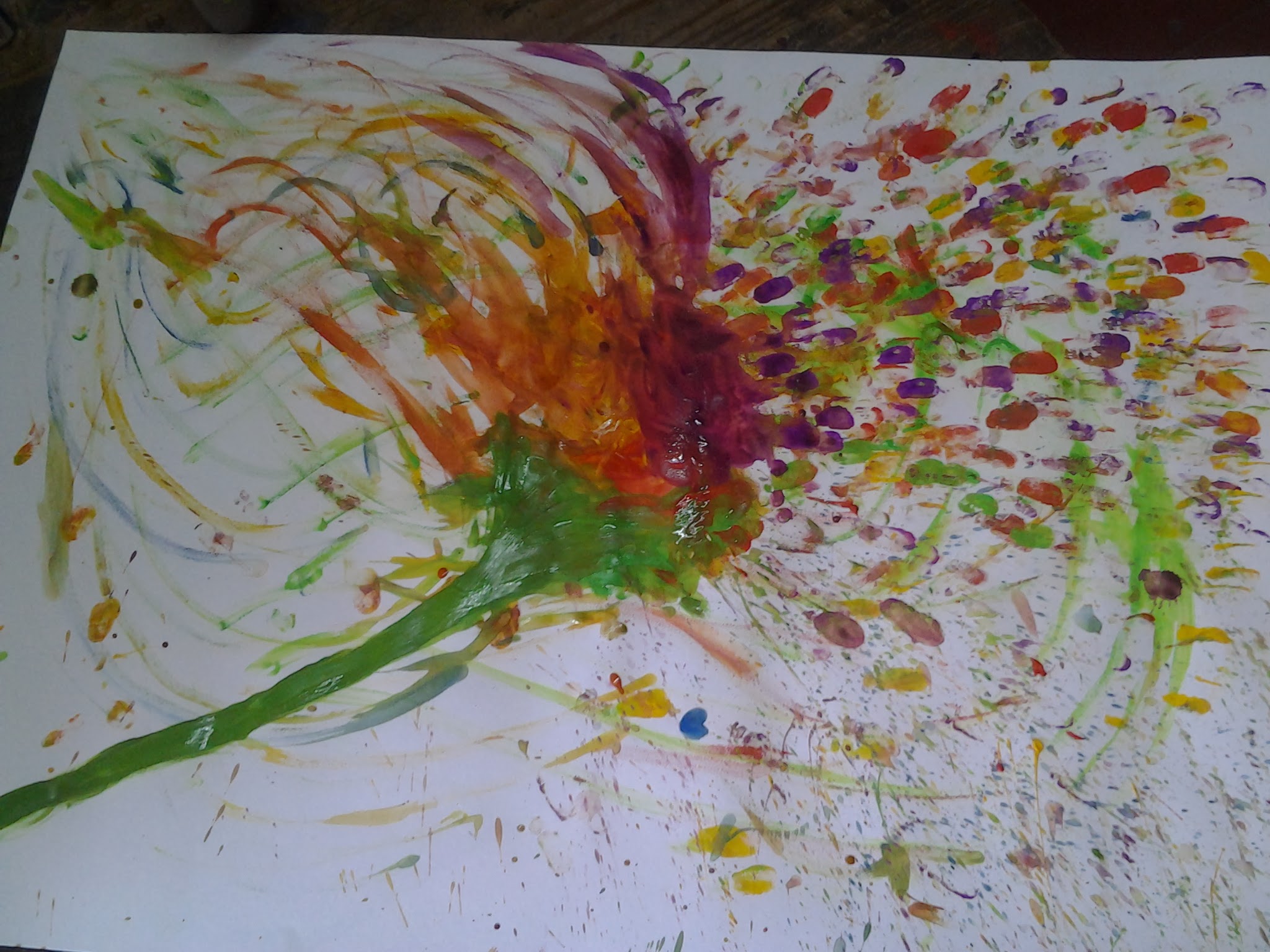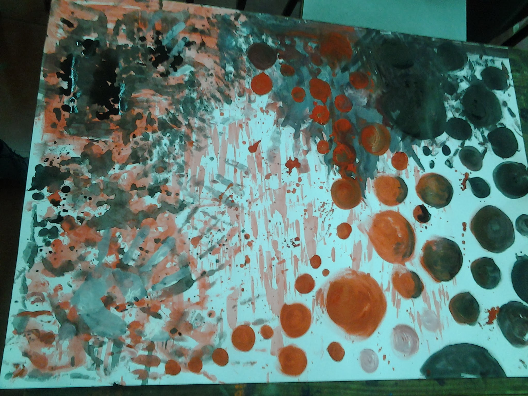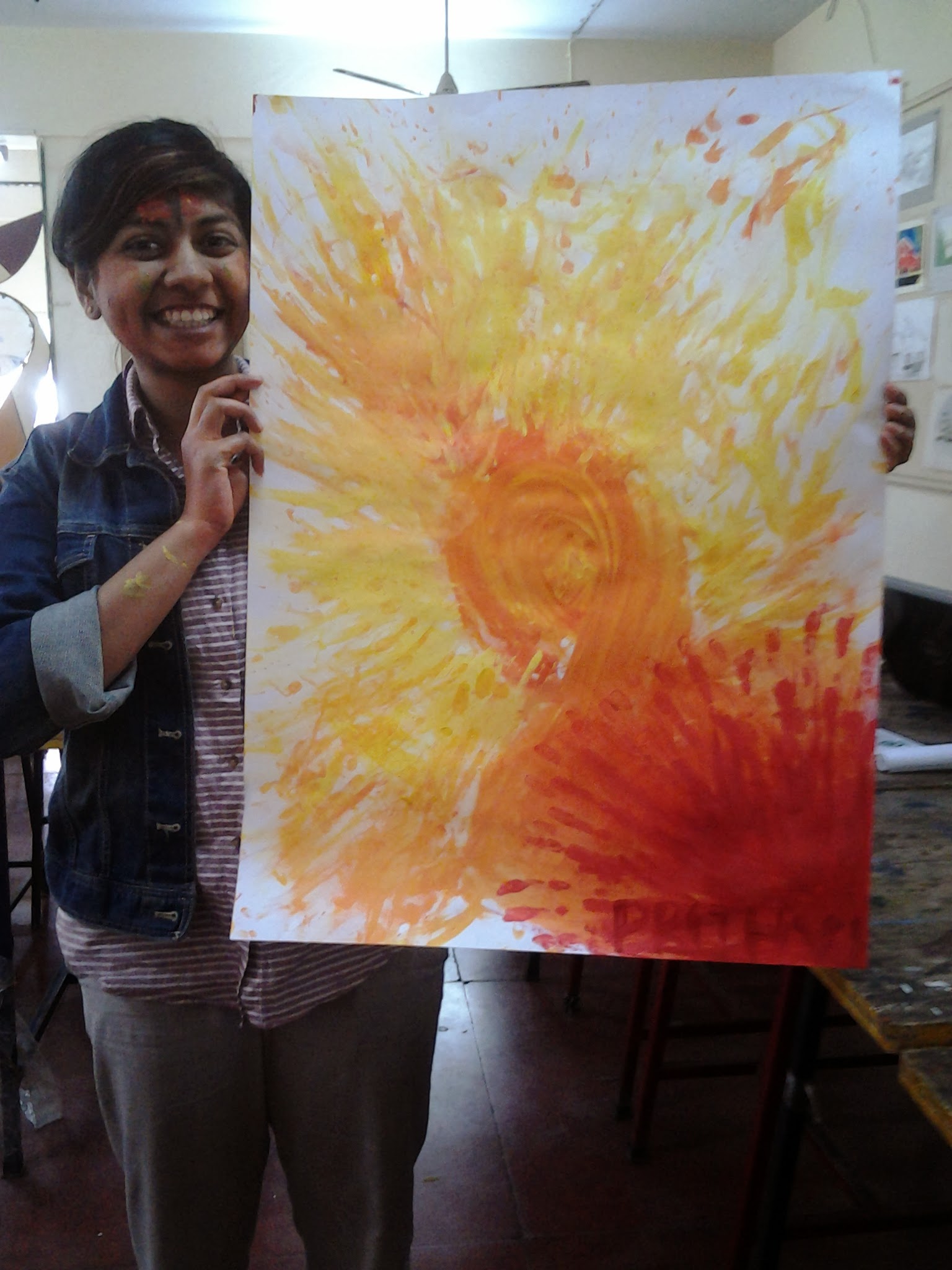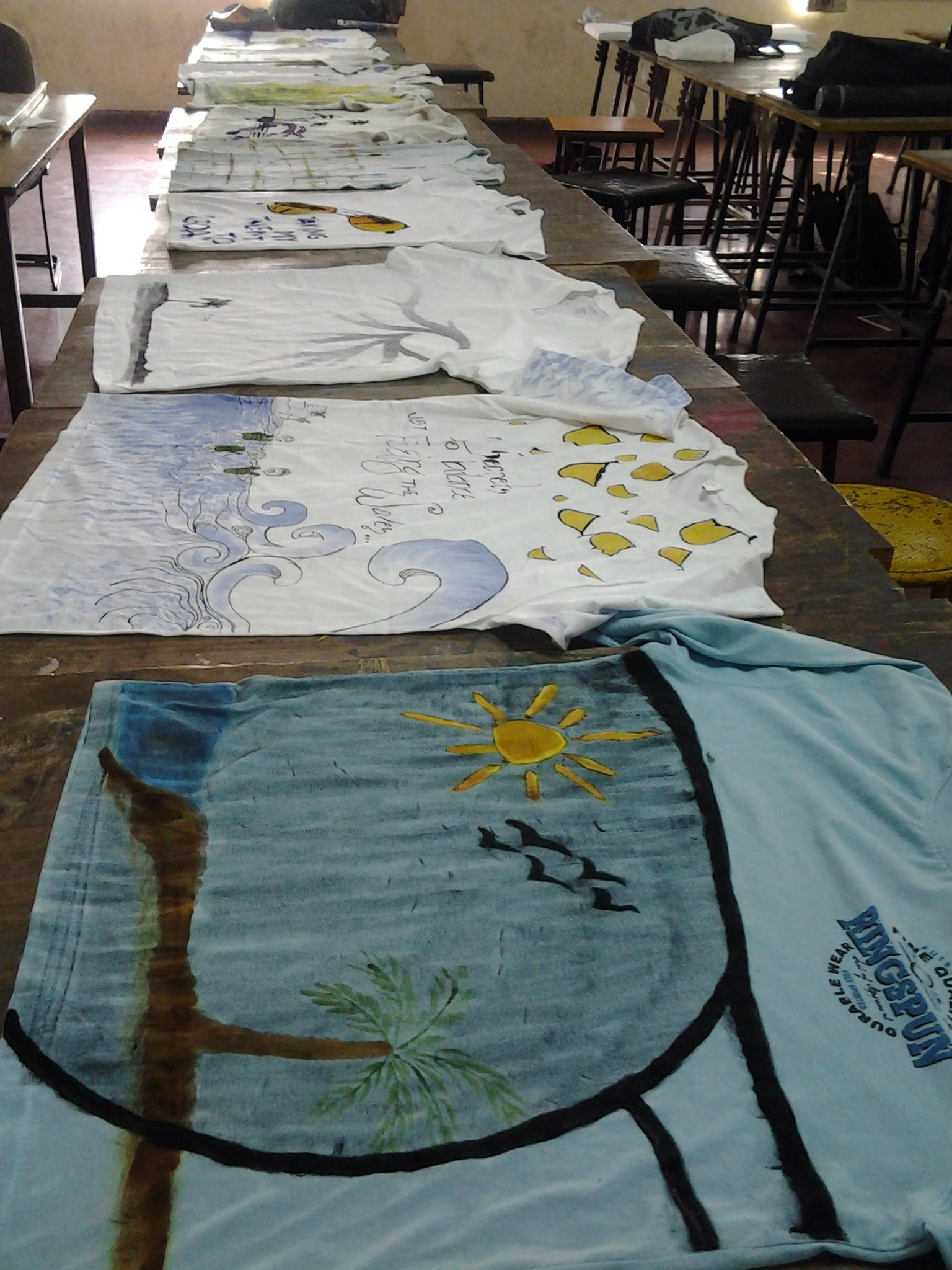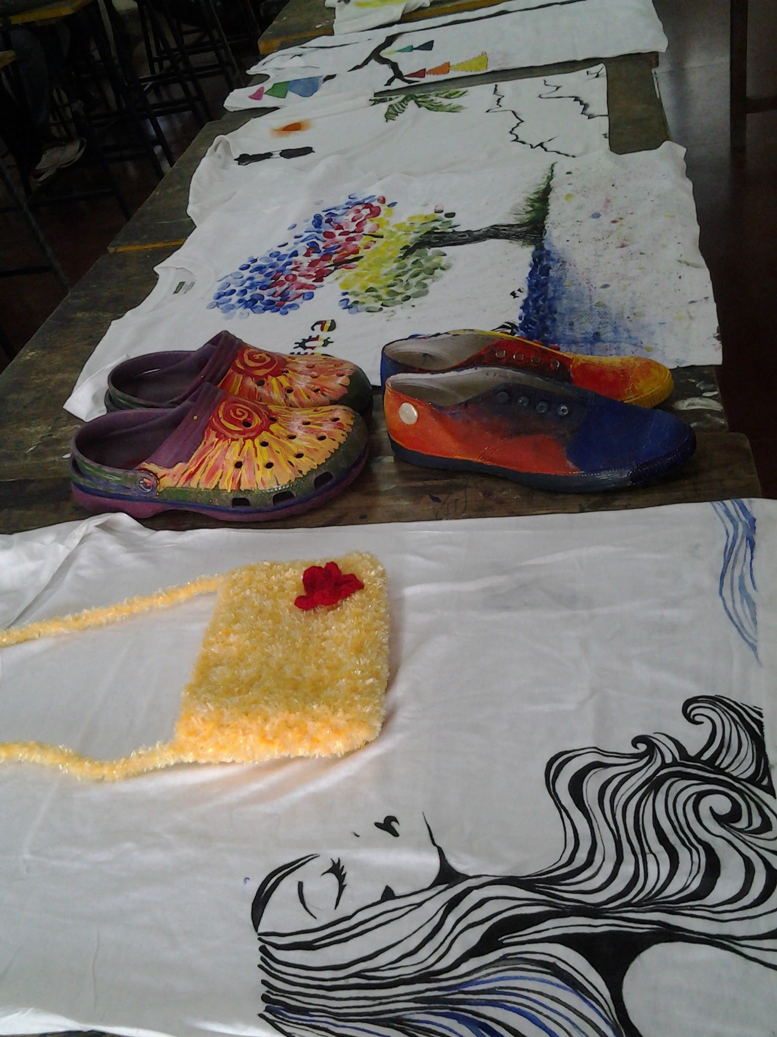 After which, that day students painted to list of music curated by them and eventually made some art on t-shirts, shoes and other unimaginable objects. The energy in the studio was exploding all the way out to the terrace and parapets. They painted with their hands, their feet, even blindfolded.