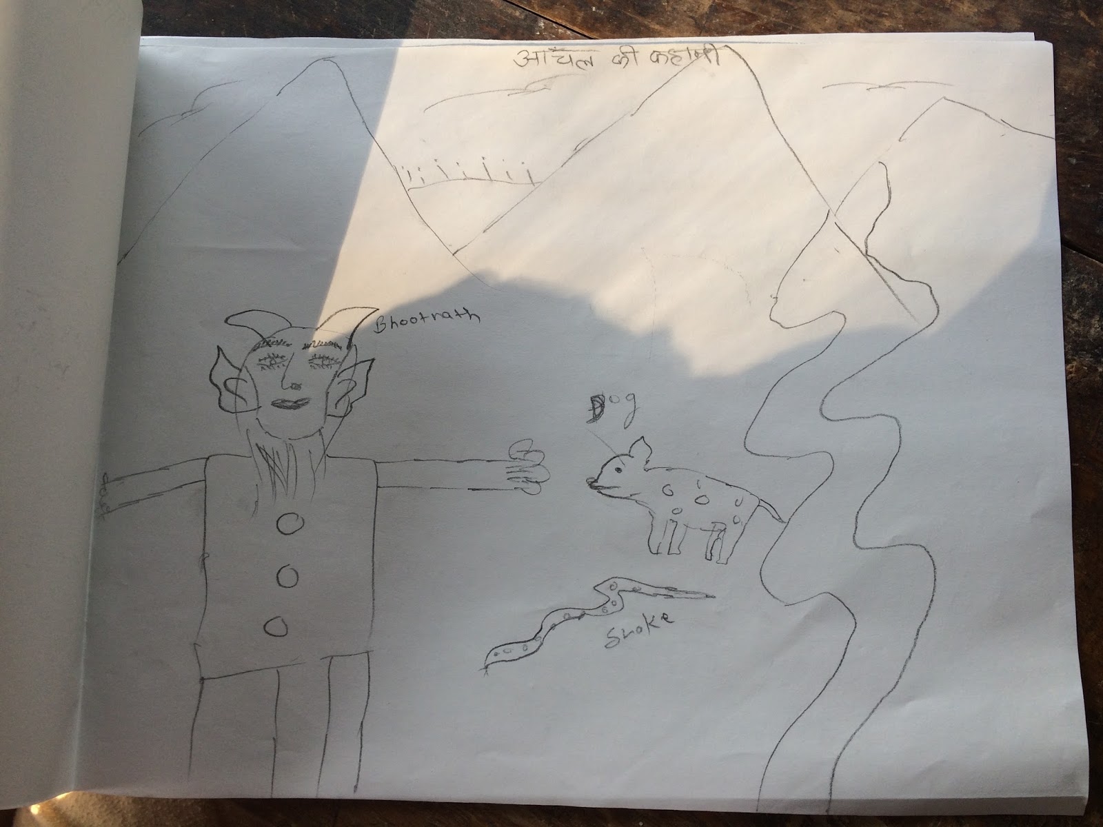 A workshop held at NCFA, Woodlands Society Andretta from 6th-9th June 2015 by Urvi Khanna for children on story making. A small group of children from 5 to 14 years participated with great enthusiasm over the four days ending with a performance on the last day.