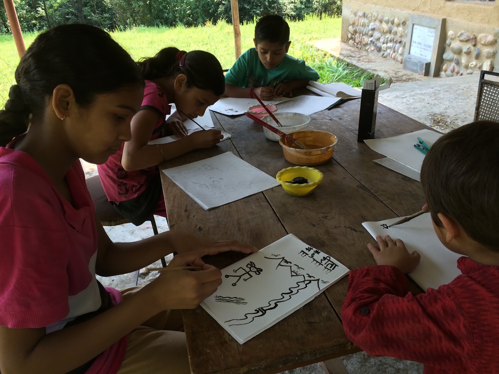We started with stories they knew and moved on to stories from their own experiences of school, travels, desires, fears and joys. Working at NCFA is a special experience, view of the mountains, cool breeze, bird sounds, happiness!..